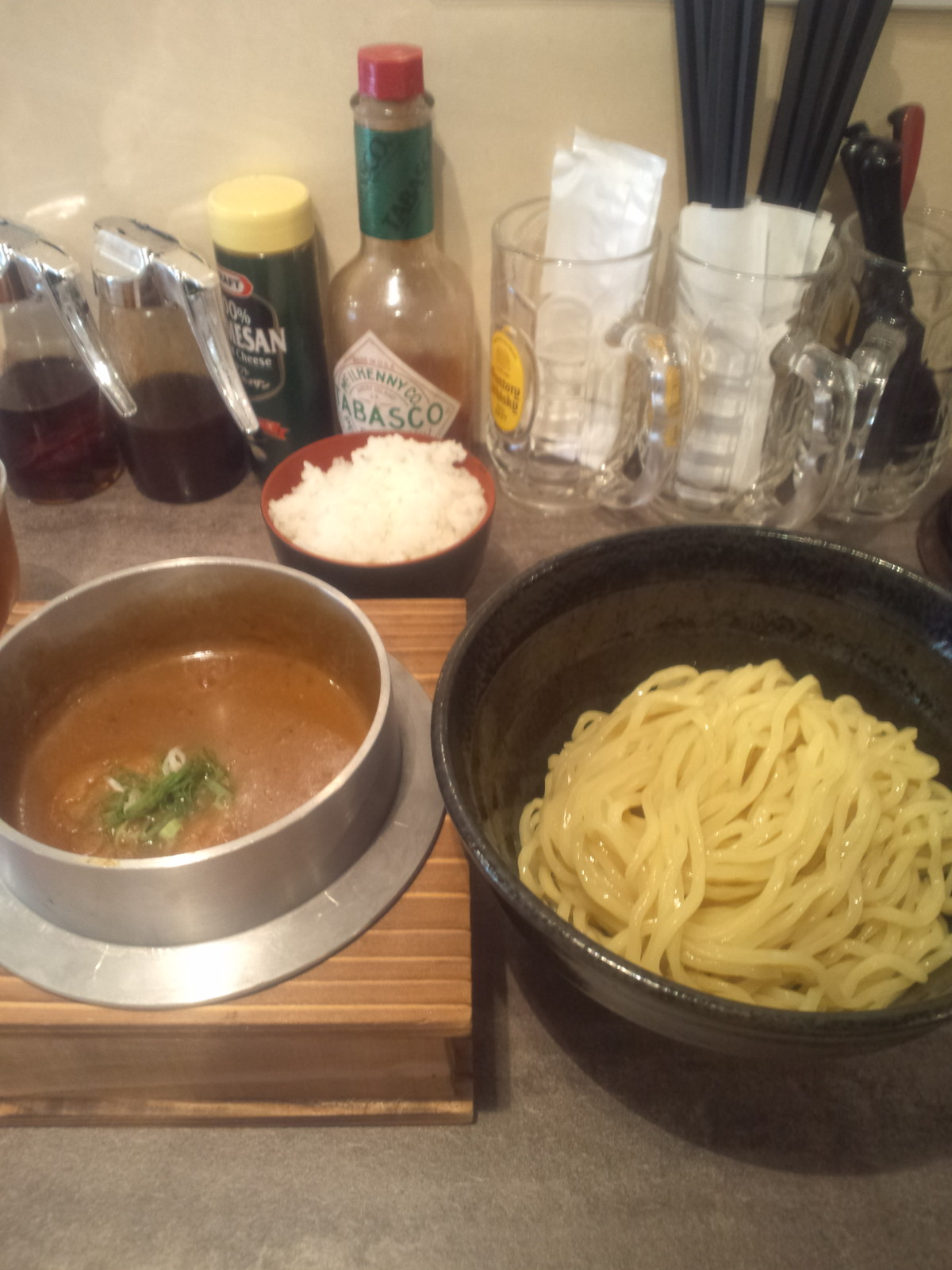 「当店の豚ロースカツは冷凍物は使用せず、すべて手仕込みで作っています」的な文字が見えましたけど、肉はさすがに冷凍ですよね?と思っていたら、つけ麺到着♪