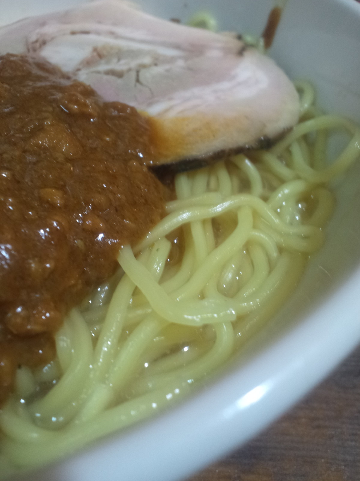 コレだけひき肉が入っていても、チャーシューの脂が入るとまた変わりますね、ちと重いですけど。