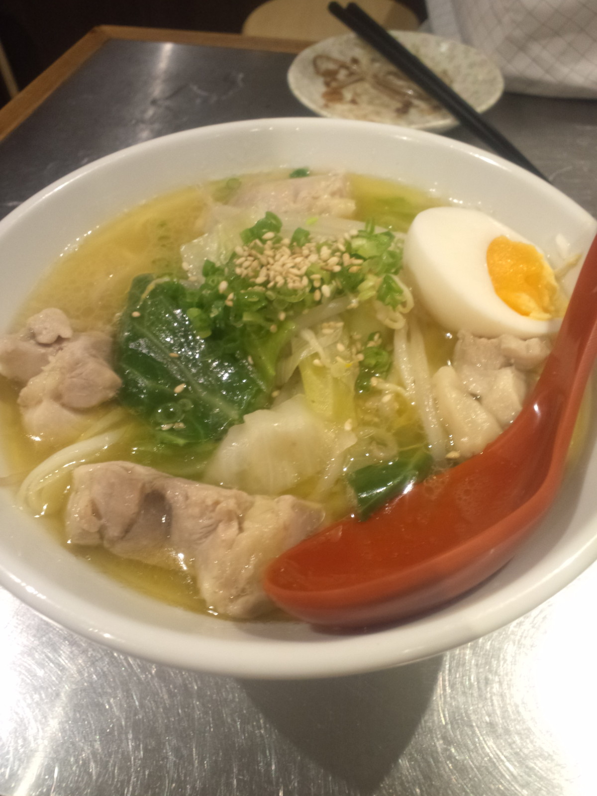 具材は野菜に大きめカットの鶏肉、卵な感じのようです。麺は中太のストレート。スープの持ち上げがとてもイイ訳でもなさそうですが、スープとのバランス的には良さげに思えます。