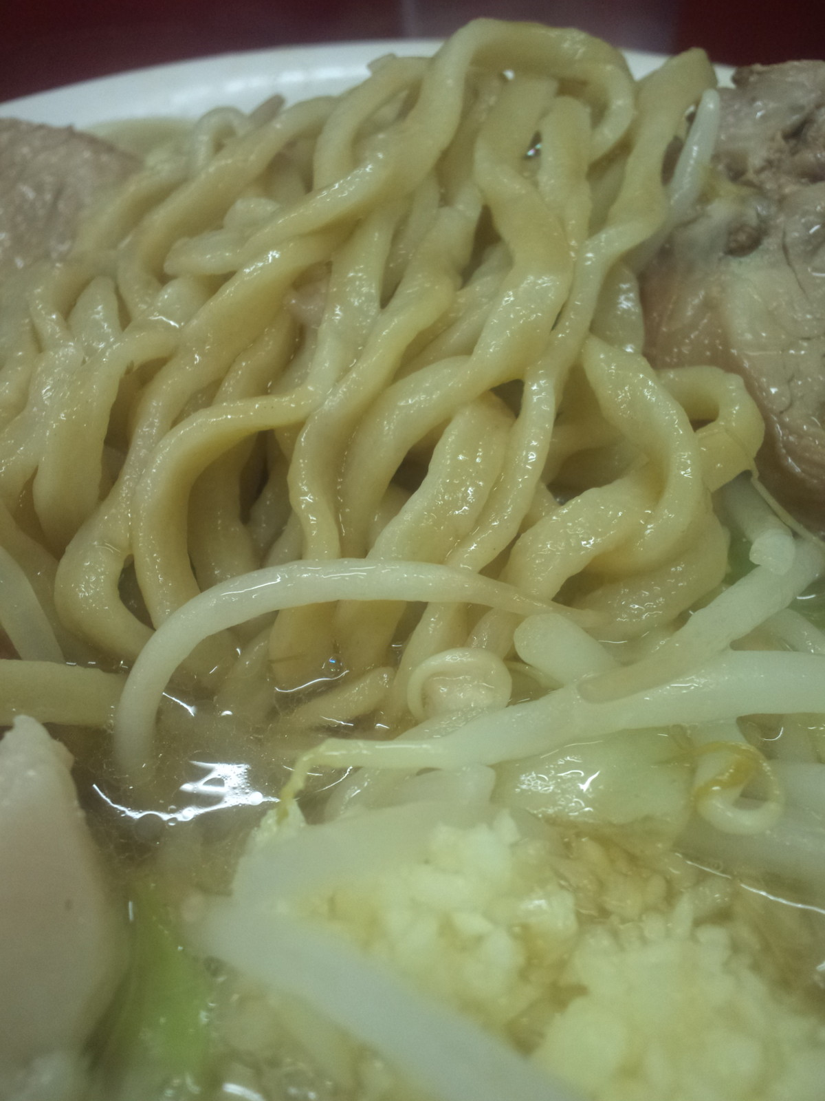 見た目、乳化スープ、飲んでみてちと辛め、でも甘め、でもうまみたっぷり、うまー。しっかり重くて飲み応えありまくりなのは、昼過ぎのちと遅めの時間だったからか。昨今の桜台のデフォはこんな感じなんですかね。