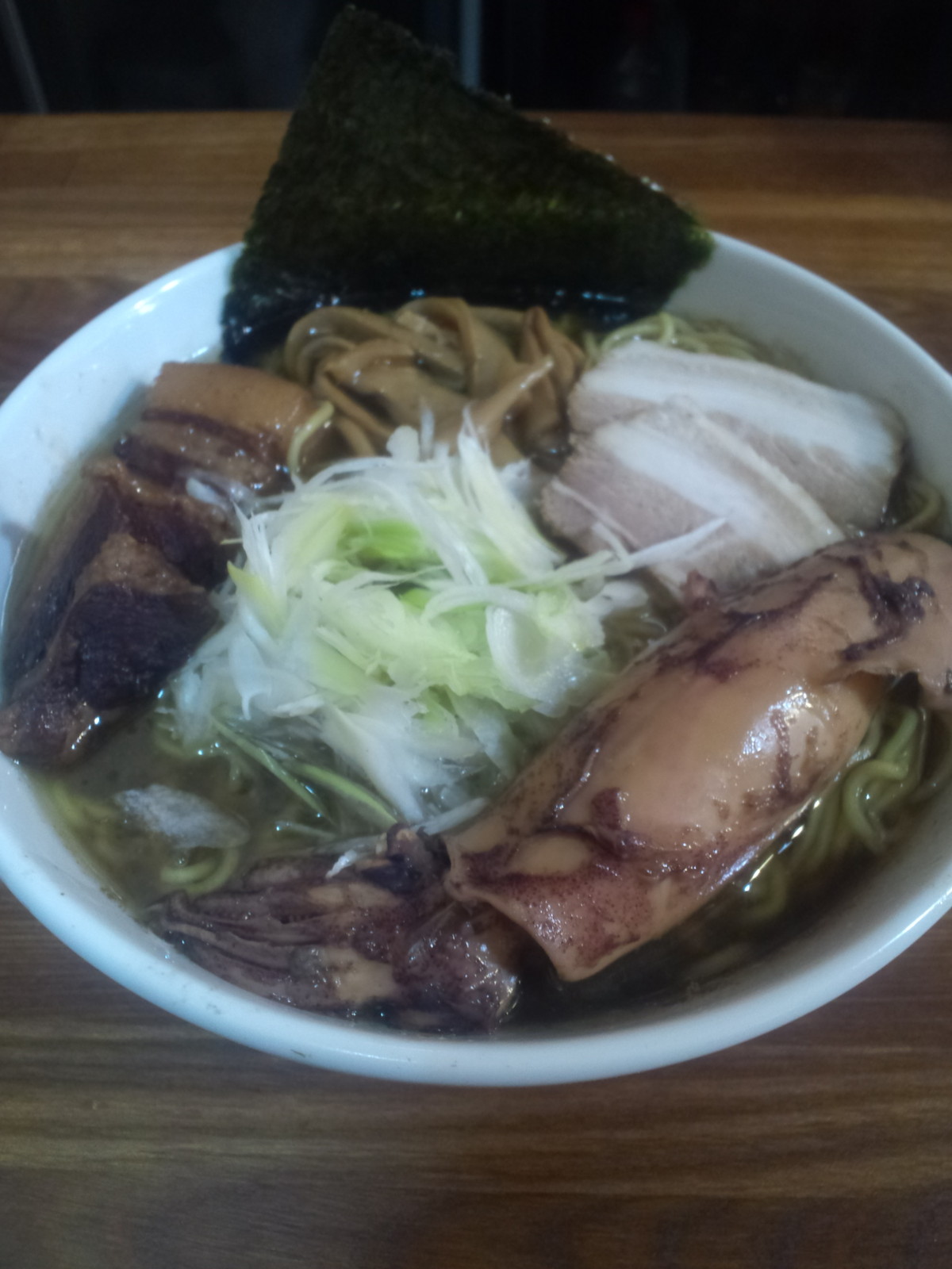 スープはいつもの大きな寸胴ではなく、別寸胴からのよう。店内に入ったときは気づきませんでしたが、寸胴から器に注がれる際に、烏賊の香りがプンッと香って、何だか・・・呑みたい・・・と思っていると、ラーメン到着♪