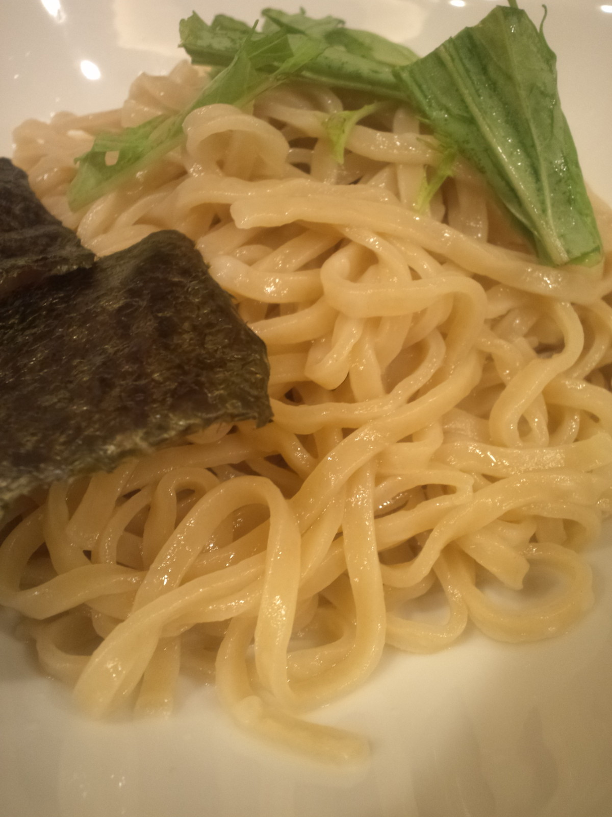 麺は太〜極太麺はほぼストレート。水道水で締められたらしき冷たさ具合で、しっかりとした歯ごたえ、表面は軽くザラつき。味わいはちと薄く感じてしまったかも?