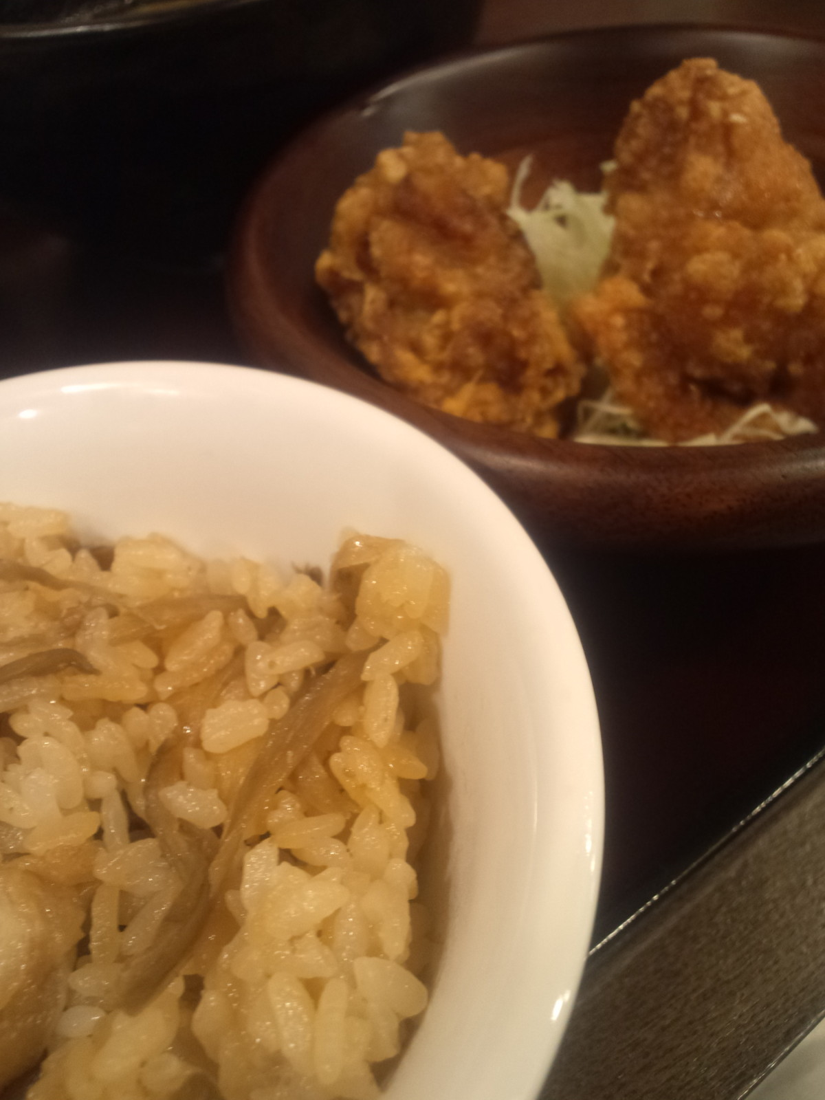 唐揚げは熱々だったらどうしようと、猫舌さ全開ですが、しっかり杞憂に終わった適切温度。以前の店舗で食べたときは、揚げ立ての熱さがちとつらかったですが、今回はそんなことはなく、特別にジューシーという訳でもないですが、普通にうま。