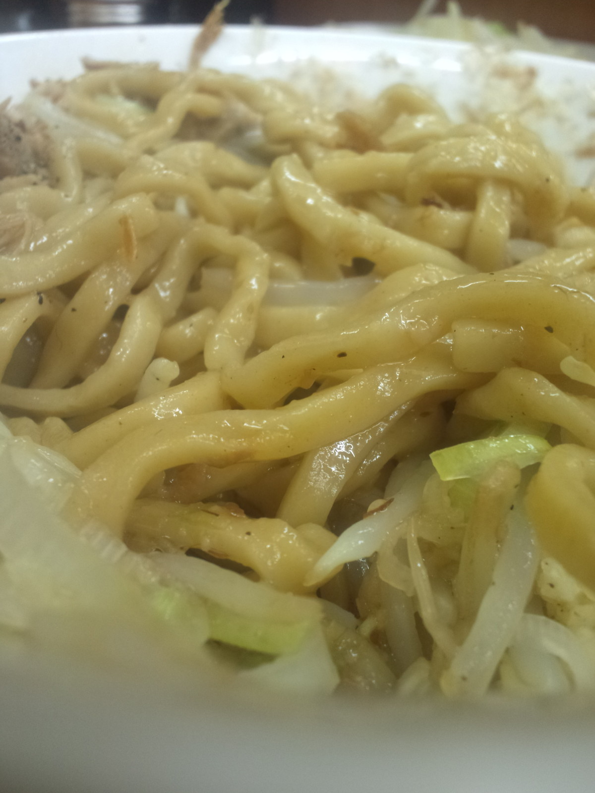 麺自体もうまいと思うんですが、しっかり絡んだスープがこれまた重くて、食べ応えがありまくりですね。しかも麺が自家製?で、適度な長さで切られてないのか長く、数本を口にいれるとすすりきれないくらいです。
