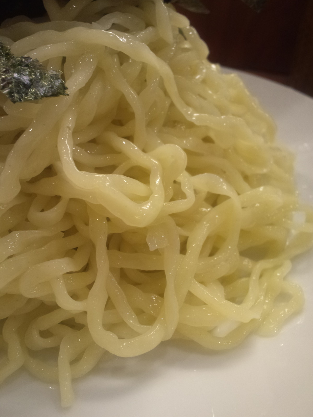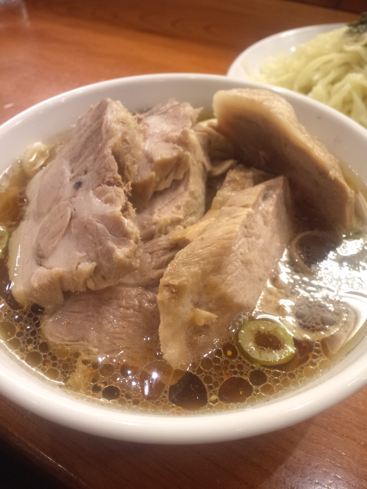 繊維質全開のパサったイメージでの訪問でしたので、かなりビックリ驚嘆。でもスープに浸かっていない部分は冷ためで、そこはちと寂しさを感じて、スープにひと通りつけていきます。