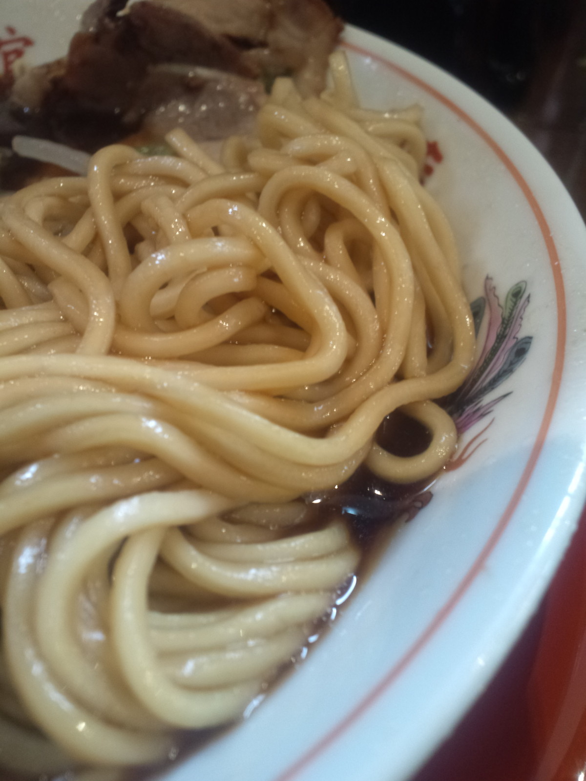 麺は中太のストレートで、スープを吸ってちと色付き。麺をすすってもしっかりカエシの香りが感じられて、味でも香りでも楽しめるものですね。