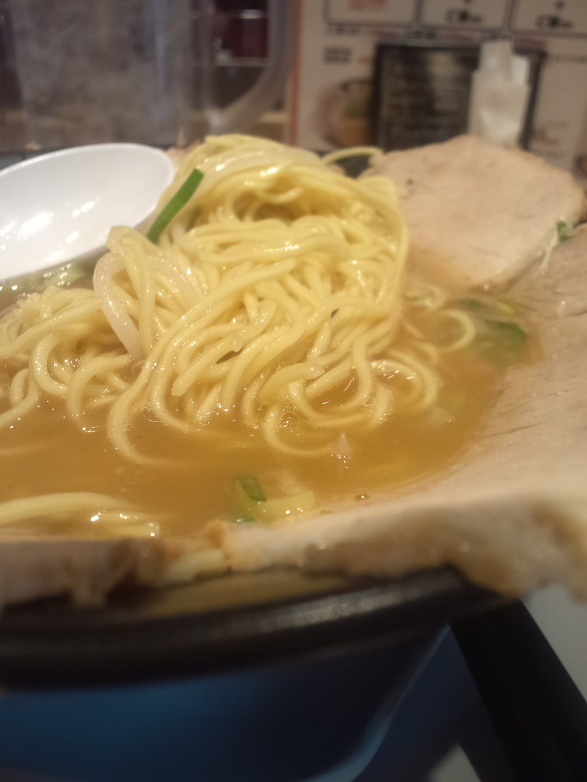 麺は普通太さのストレートな感じ。で、気持ち柔らかめなんですが、この日の気分的に?、このスープ的にはもちっと固めがいいなぁ。