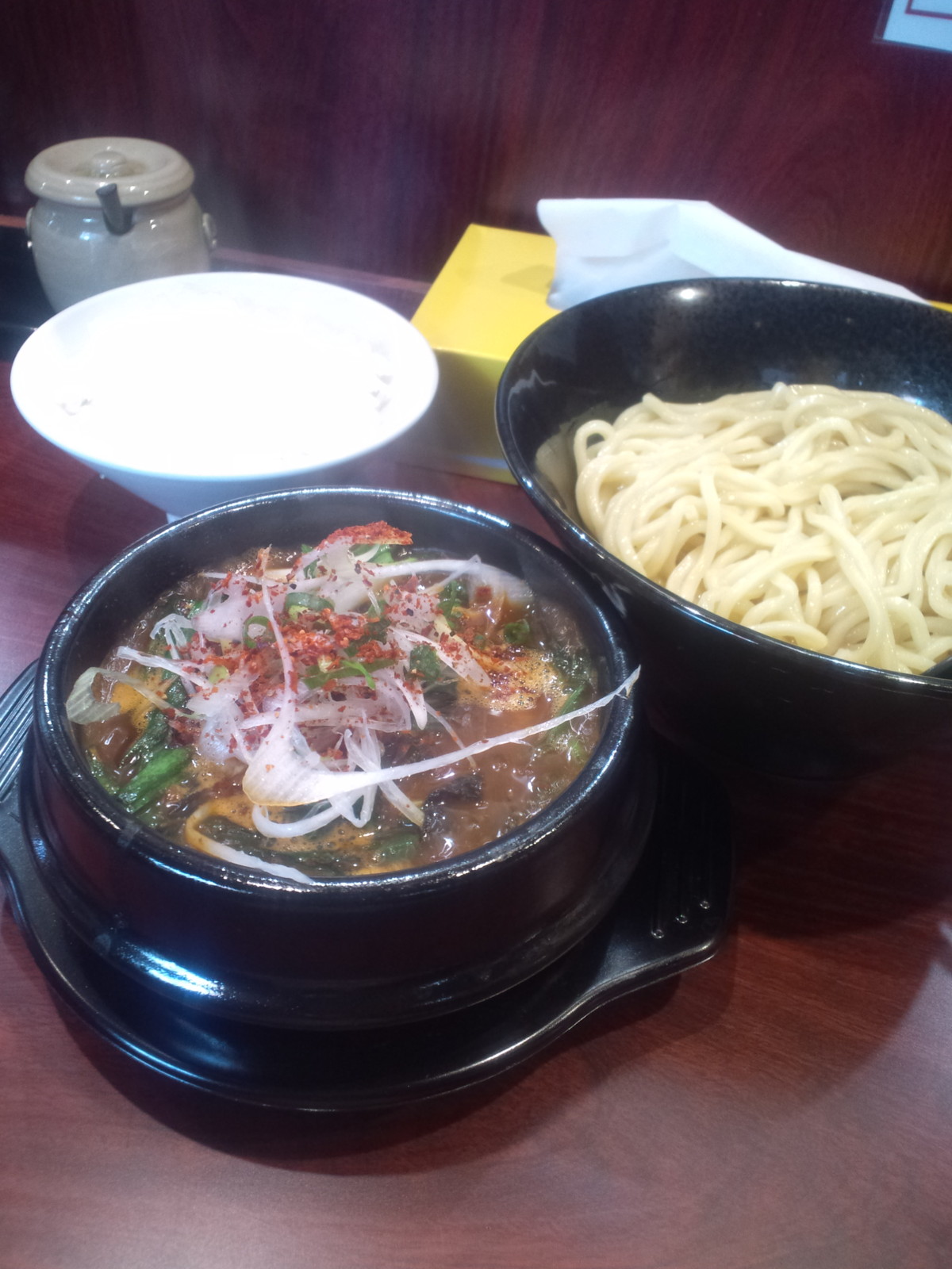 辛さが足りなかったら足しますので〜的に言われながら配膳。しかし、スープがグツグツと煮たっていて、色合いからまさにマグマのよう・・・が第一印象。プンッと香りを感じたのは牛脂のようなものですが、でも肉は豚肉でしたよね?と食べていきます。