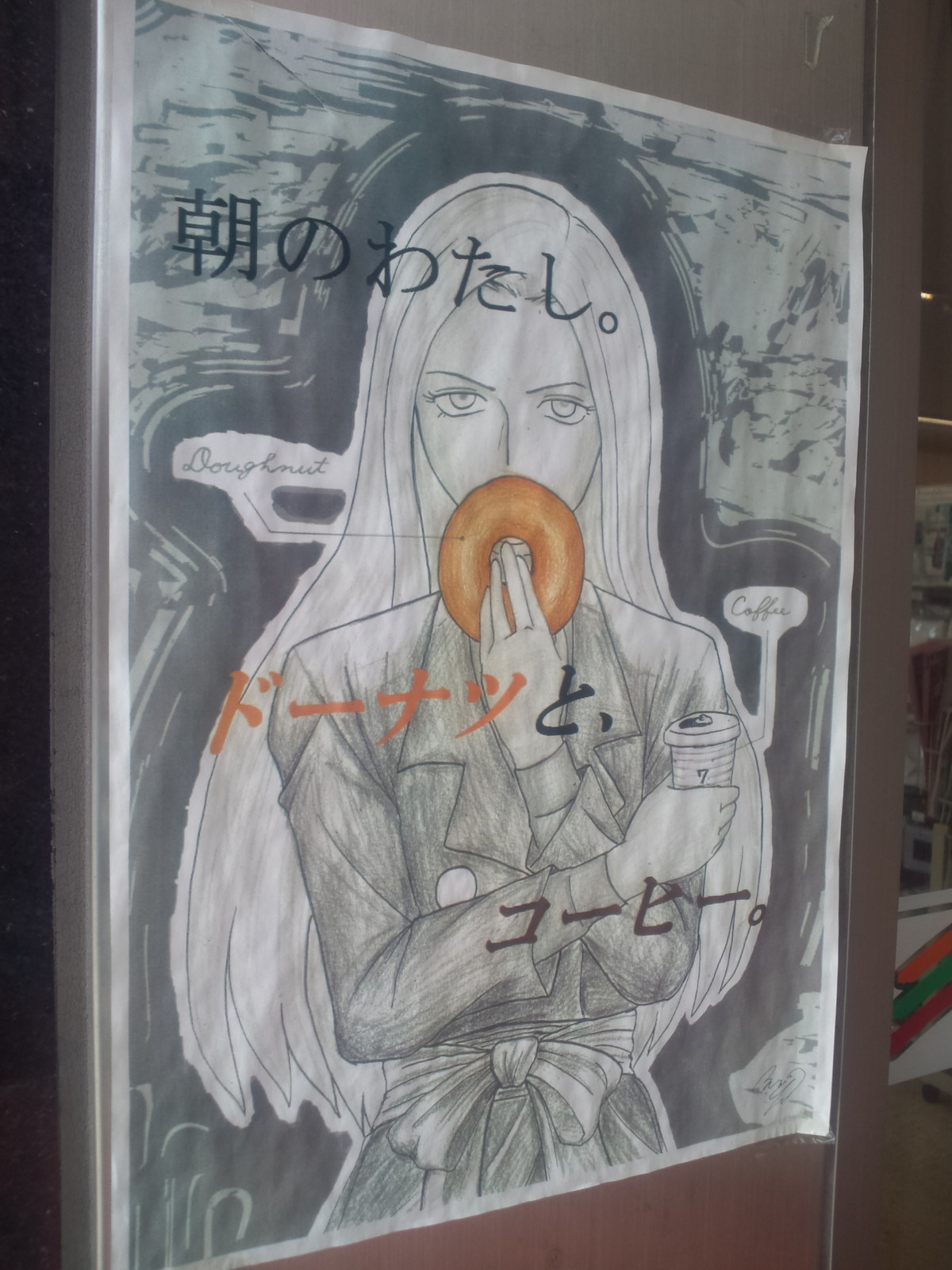 帰り道、セブンイレブンに寄ってみるとドーナッツとコーヒーのイラスト。ゆ、ユマさん・・・じゃないですよね?(全員わからないと思うので全員スルーで)
