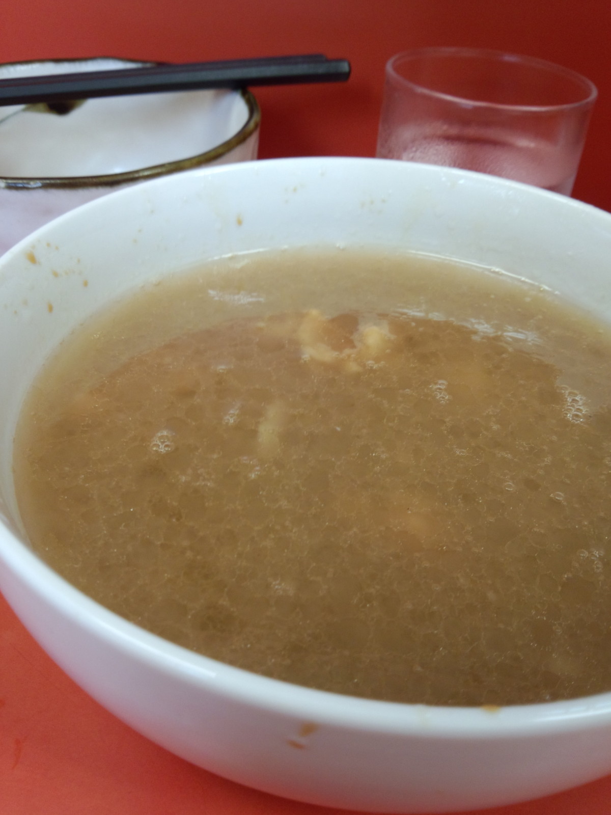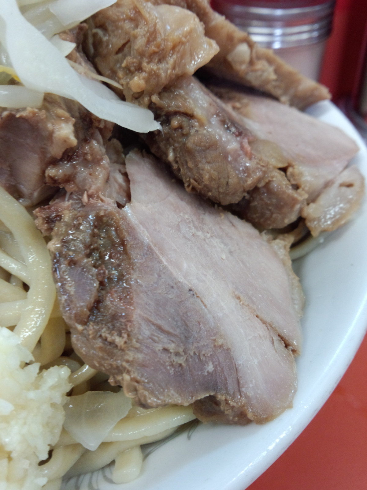 しかし麺量、多いなぁ。こういう時って中盤にかかると「ぜ、全然減らないんですけど・・・」と思いがちですが、この日は体調も良かったからなのか、「このうまさなら食べれるなぁ」という気持ちが先行、箸休めに豚を食べれる余裕があったりして。