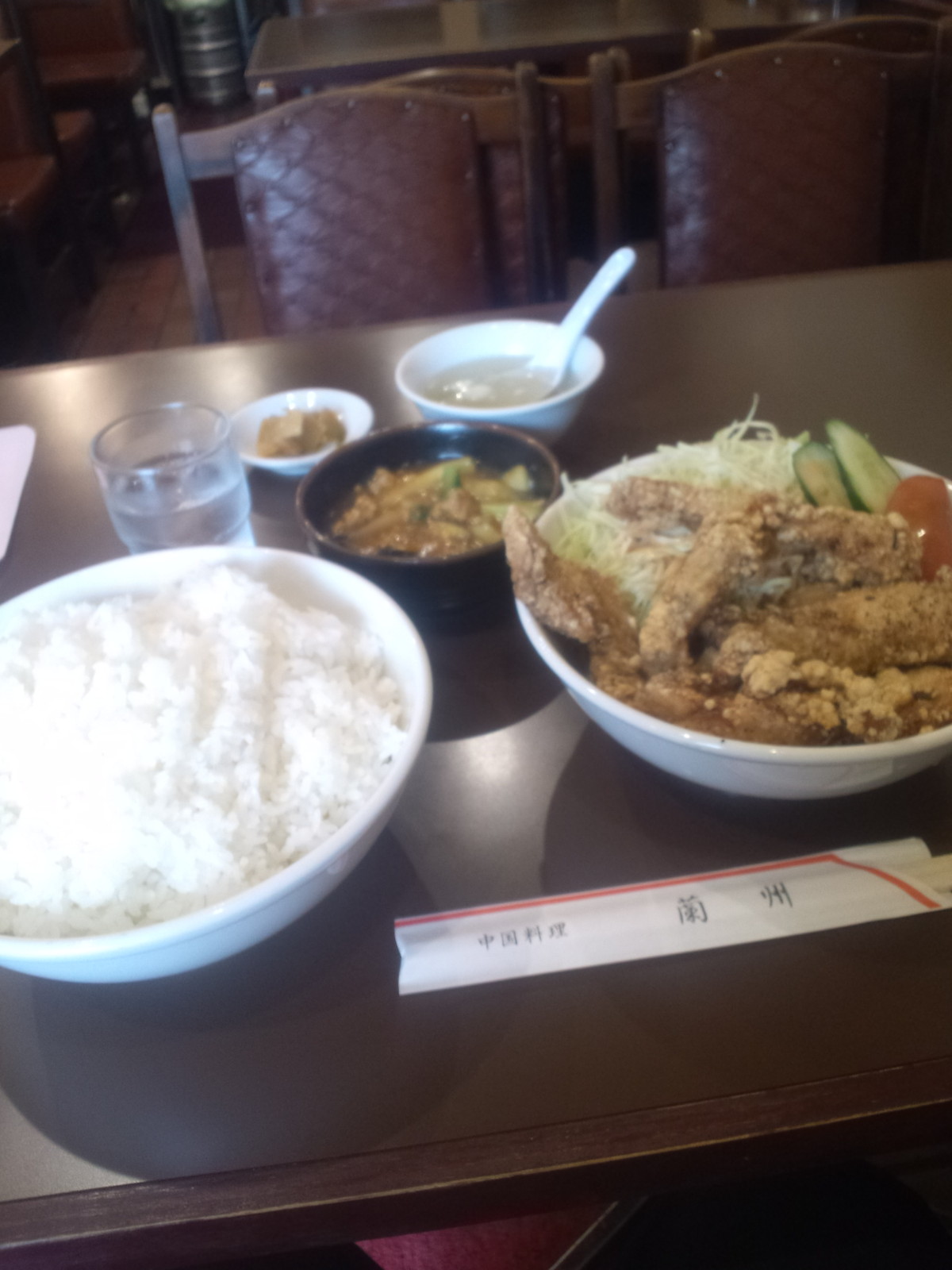 訪問すると2階は終了の模様で、初の1階へ侵入。特に静止されることもなく、口頭オーダーが通りました。 時間帯もあってか、各テーブルに1人ずつくらいでガラガラの店内だなぁ、と待っていると、定食到着♪