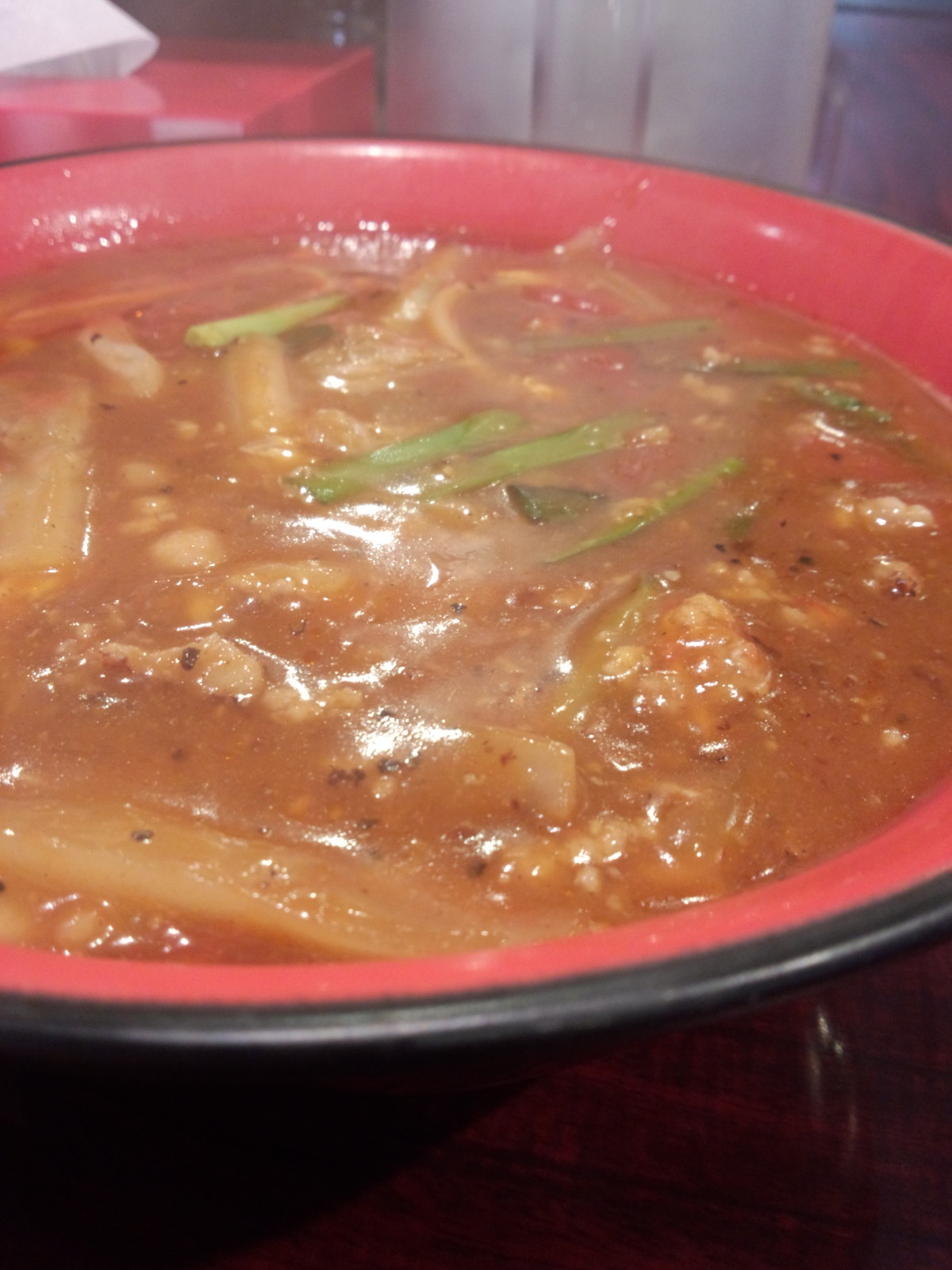 野菜にもしっかりスープが絡んで・・・卵の風味?そしてしっかり熱くて・・・やっぱししっかり辛いです。