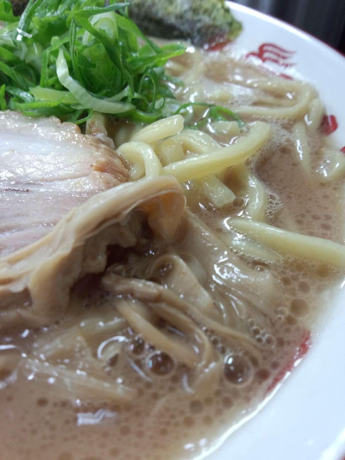 脂の甘い香りがするような、が第一印象。豚骨のイヤな香りは皆無、私は感じませんでした。家族連れが多いのもそのせい?