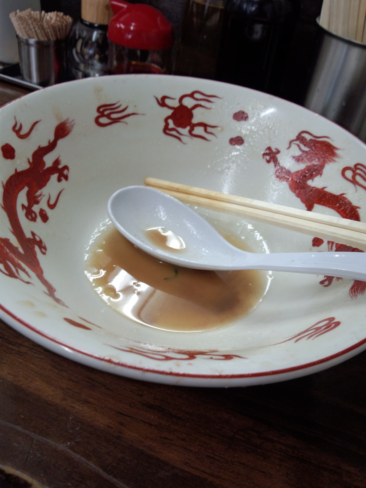 ちとだけ残ったご飯を、ラーメンスープとで頂いて完食です。まだ店頭には行列、人気が伺えます。