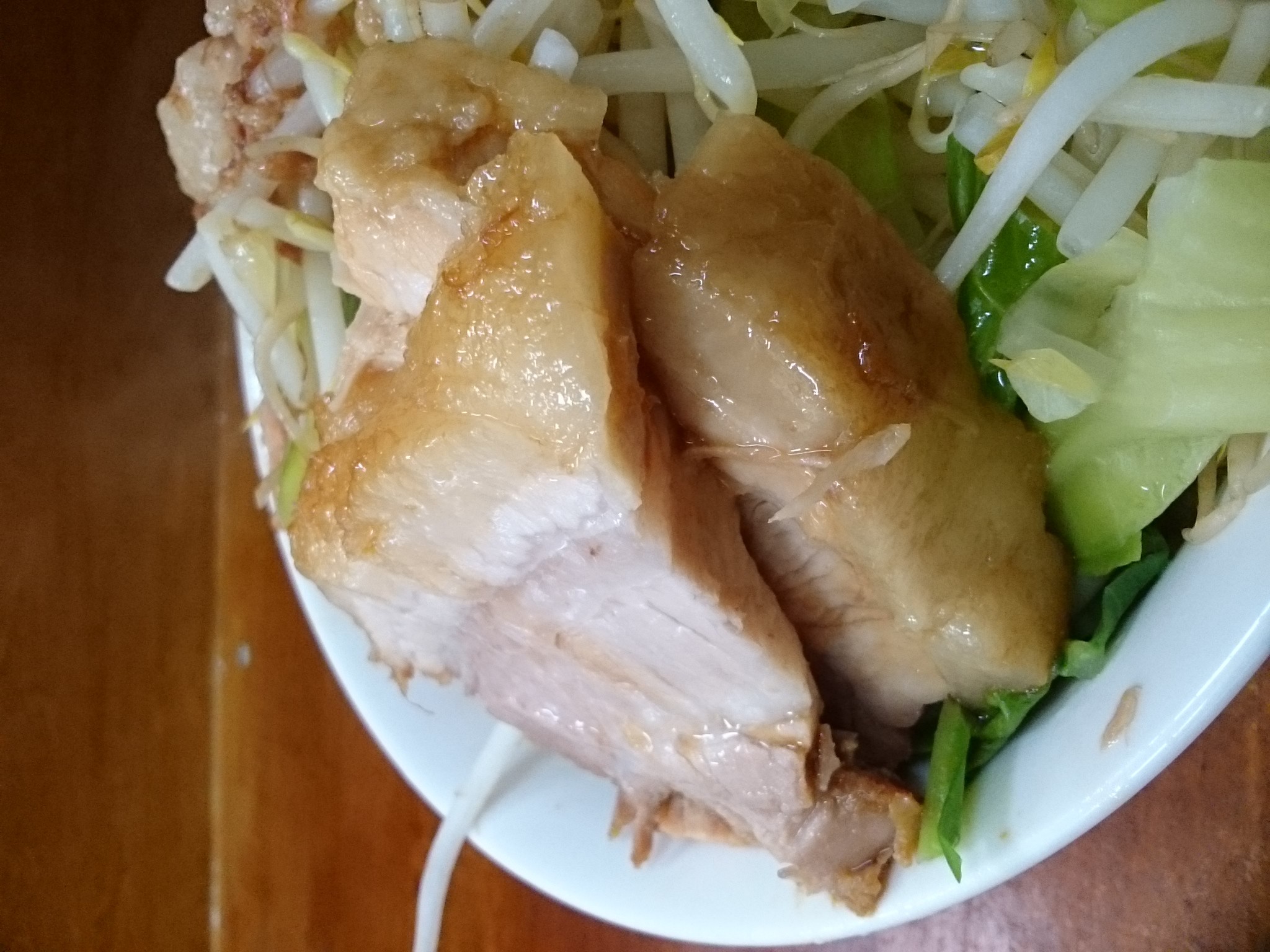 豚はロースチックな感じで、赤身はちと歯ごたえを感じましたが、パサなくジャキッと歯ざわりのもの。存在感のある麺&スープに引けをとらない、しっかりとした存在感でうまー。
