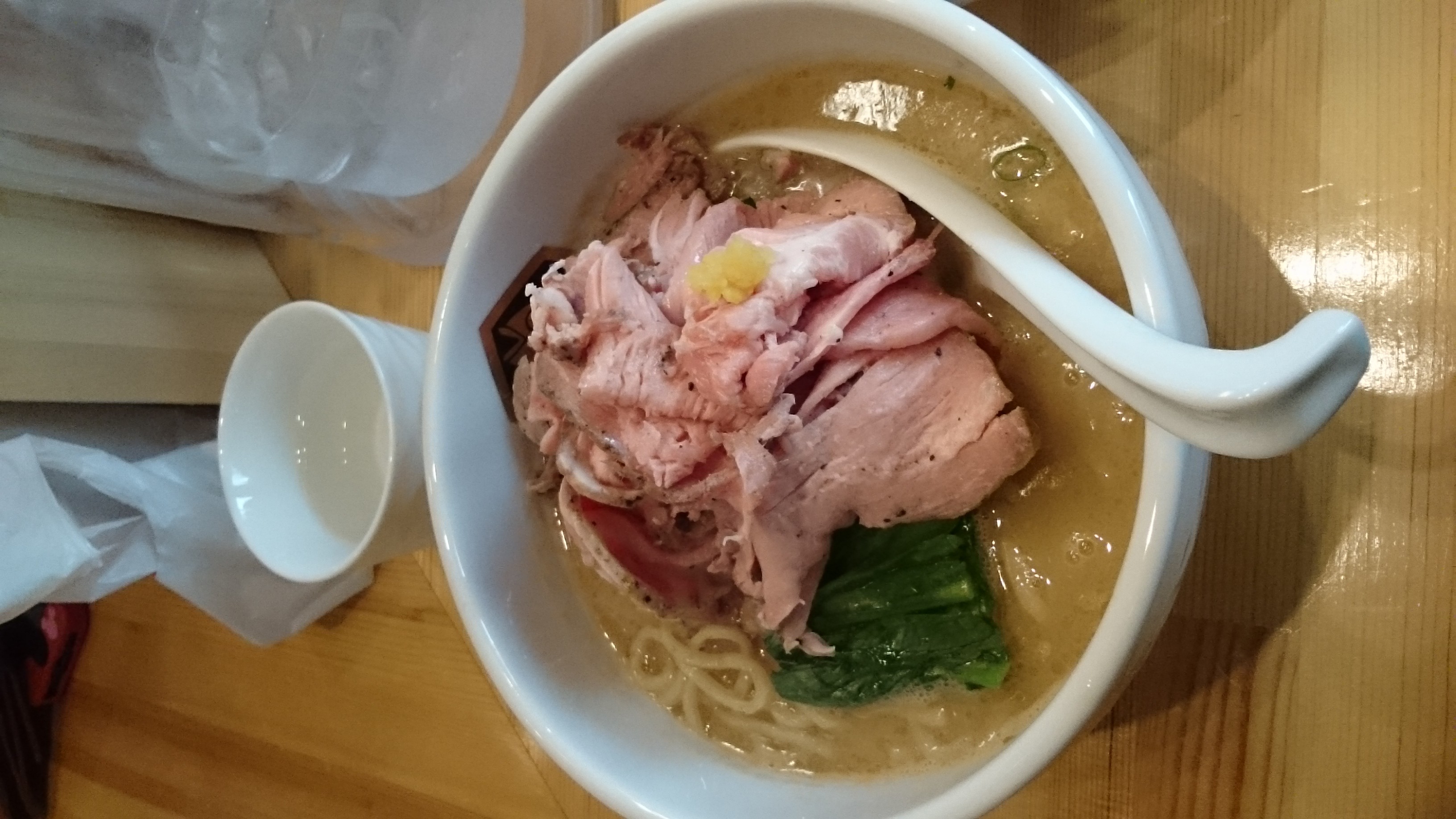 後半になって、スープの下の方から鯛のほぐし身的なものがちらほらと。食感は鯛っぽく感じましたが、スープが結構濃厚だからか、ハッキリと存在感は感じません。