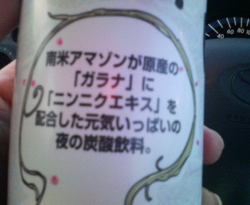 スリーエフで購入。しかしスリーエフはなんつっ亭だらけ。このジュース、即席カップラーメン、即席まぜそば、おにぎり、うまい棒にラーメンまん?のようなものまで販売していました。