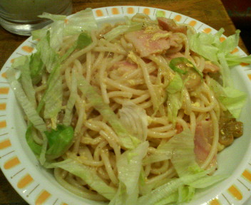 着席する際に記述のものを口頭オーダー。やっぱ昼時は(持ち帰りの)電話が鳴りまくりで大変ですね、と思っていると、スパゲッチィ到着♪