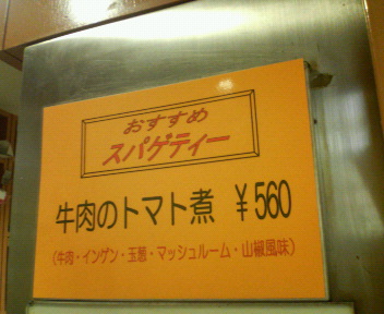 並んでいると店頭に張り紙がしてあります。なになに、4月1日よりジャリコ、バジリコは50円値上げだが、他の「スパゲッチィー」、ポークカレー、サラダは価格据え置きとのこと。スパゲッ・・・チィー、スパ・・・。