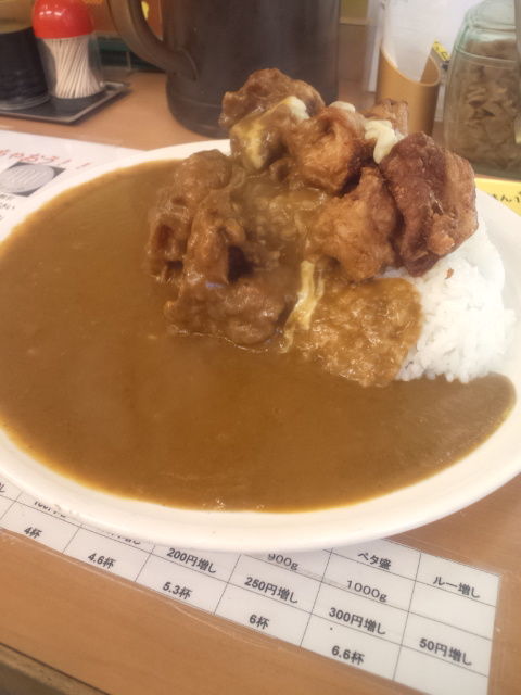 マンモス1kg唐揚げカレー、ごはん100g