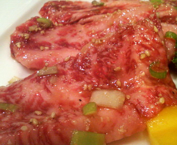 でーんと大き目の器で来ました。牛肉のタレ焼きにナムル的な感じ、スープにキャベツの千切り、キムチなセットです。ただオーダーしてから器が到着するまで約3分。