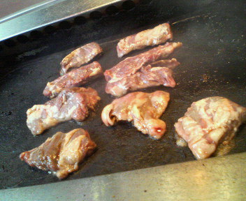 提供時間短縮のためか肉は焼いてあってちと冷ため、熱々でなかったからそう感じたのかもですがご飯の方が全然温かかったです。