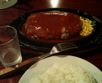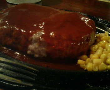 暗い店内にシックな大人の雰囲気・・・よりも微妙な怪しさを感じてしまったりしつつも、ジャンボハンバーグ500gのの文字を見つけて早速オーダー。ジャンボハンバーグ