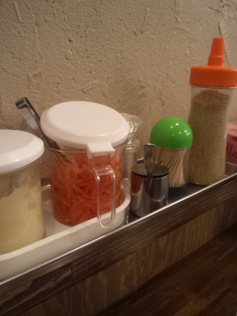 カウンター席に座ってラーメンをカタでオーダー。店入り口の壁には漫画がたくさん、漫画喫茶みたいだなぁ、と思っていると、ラーメン到着♪