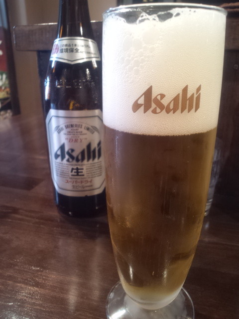 コレはちとゆっくり出来そうかなと、ビール。券売機の一番左上のボタンがビールのボタンじゃないすか!とちと驚きながらも、そのボタンを押していくスタァ〜イル♪ビールがすぐ到着。提供までそれなりに時間がかかると予習していましたので、店内レイアウト、店員さんの調理風景を肴に、チビチビゆっくりと頂きます。